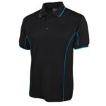 This stylish sports polo features contrast corded piping lines down front and back, plus contrast tipping on knitted cuffs and collar.